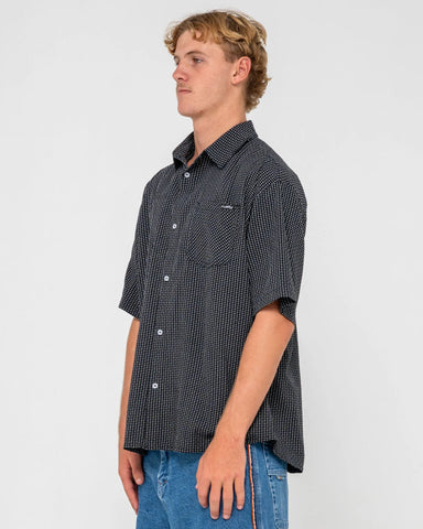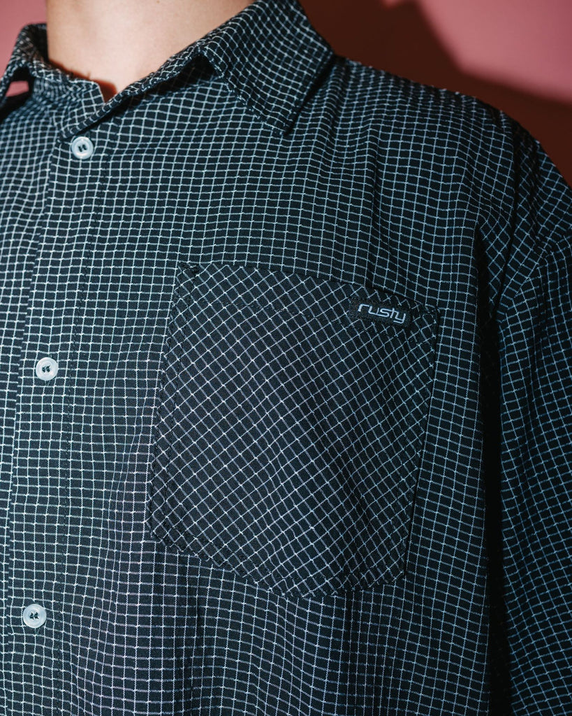 R2K Fit Shirt With Diagonal Cut Chest Pocket And Drop Curved Hem. 100% Cotton Mini Check