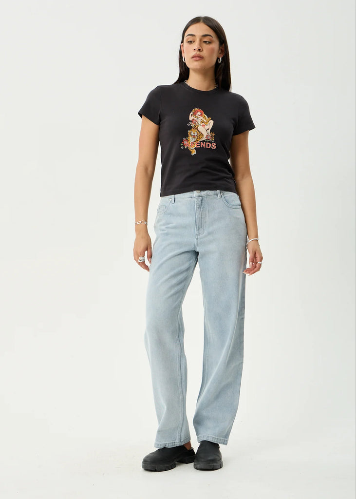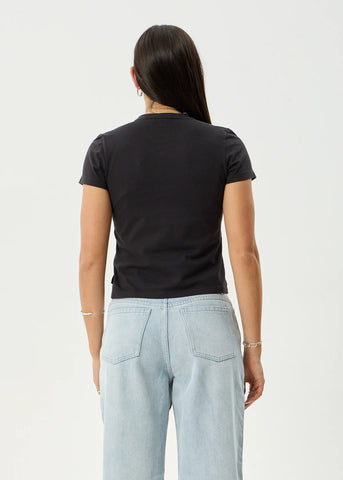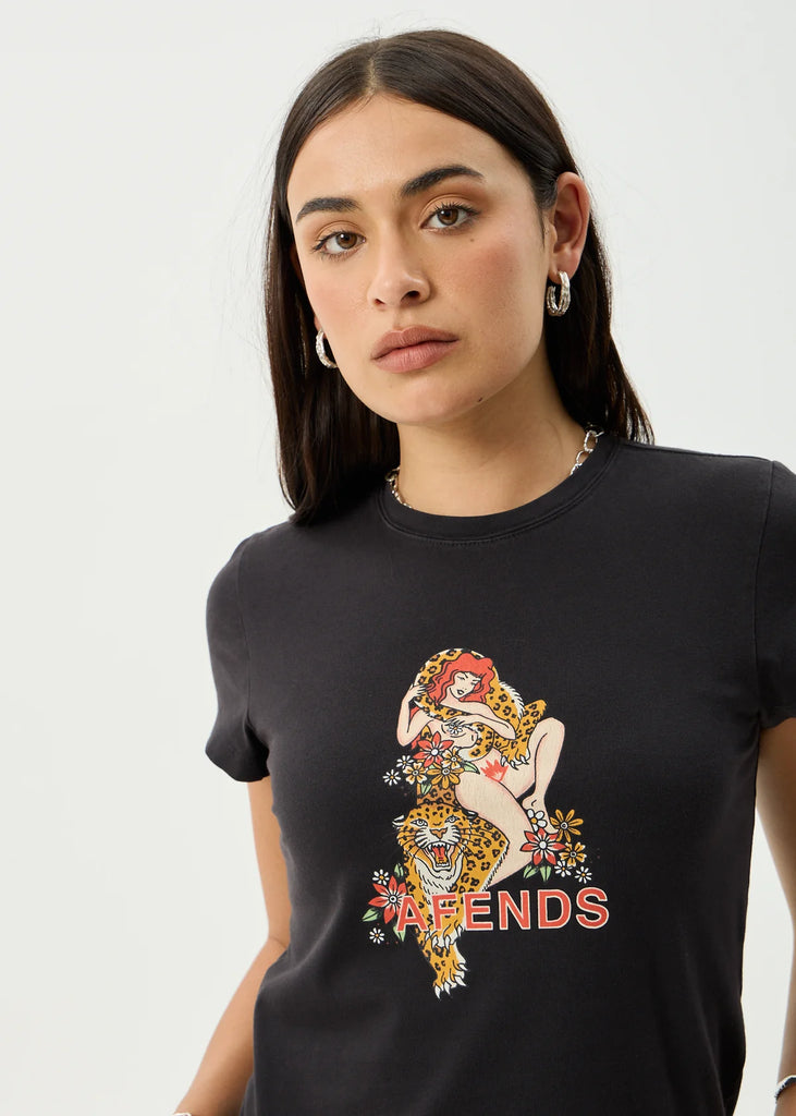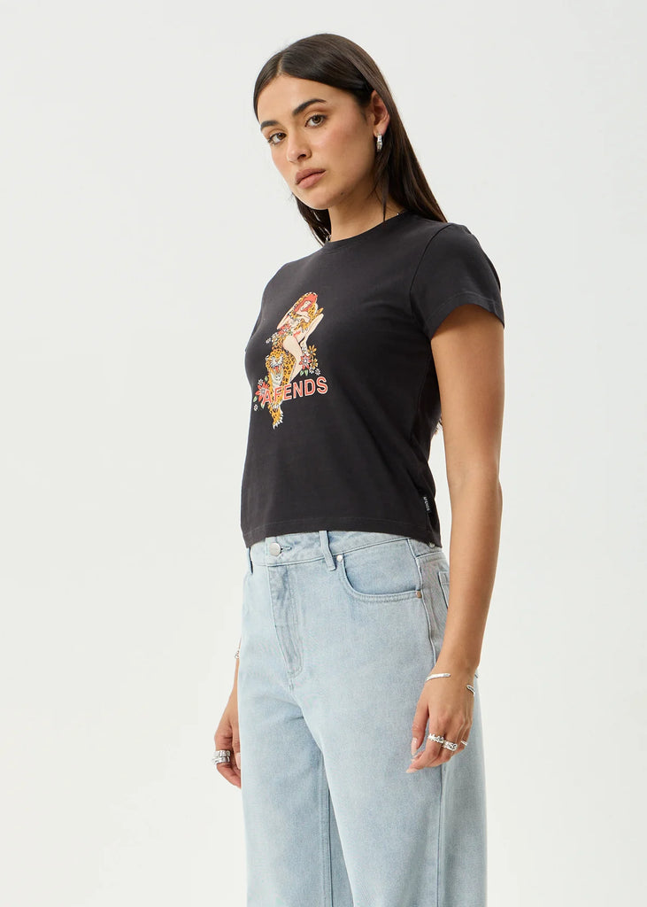 The Hellcat baby tee features an original design from local Byron illustrator Clare Duffy. Designed with a cropped, slim fit, ribbed crew neckline and crafted from a soft and breathable recycled cotton blend jersey.