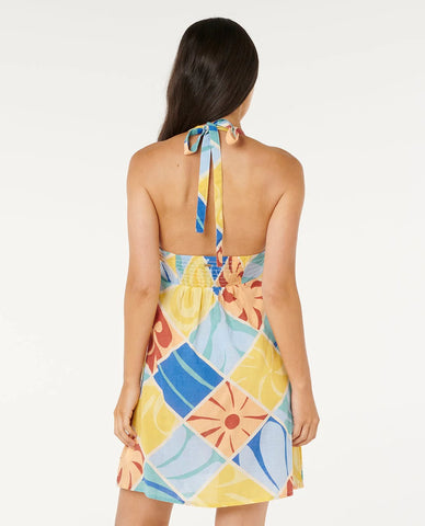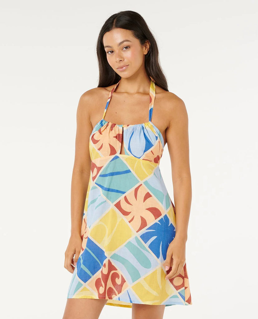 Halter style meets shirred back detail and placement print in the Artist Of The Search Cover Up, crafted for easy beach-to-street wear.