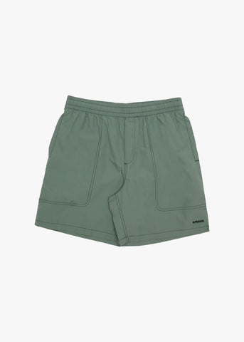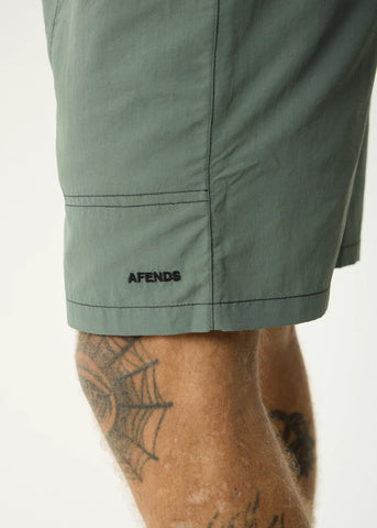 Mens 18 inch swim shortsRelaxed fitWalk short lookElasticated waist with internal drawcordRed contrast stitchingQuick dry fabricationSide entry pocketsBack pocket with velcro closure