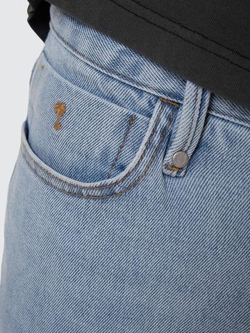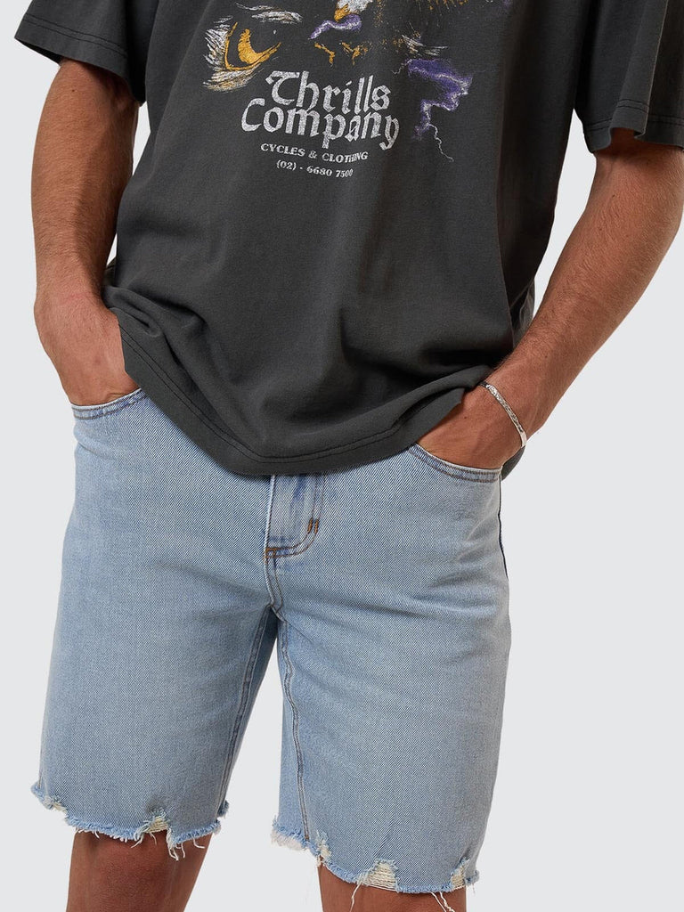 Faded to a sun-bleached perfection, the Bones Denim Short in Dusk delivers old-school vibes with a modern cut. Built from a durable cotton denim blend with a bit of stretch, these vintage denim shorts sit mid-thigh with a slightly tapered leg for a sleeker, flattering finish. Clean and minimal, they feature a classic 5-pocket styling that works for laidback weekends paired men's graphic t-shirts edge. If you're chasing your go-to summer shorts Australia style, this pair from our men's streetwear spring range earns daily wear status