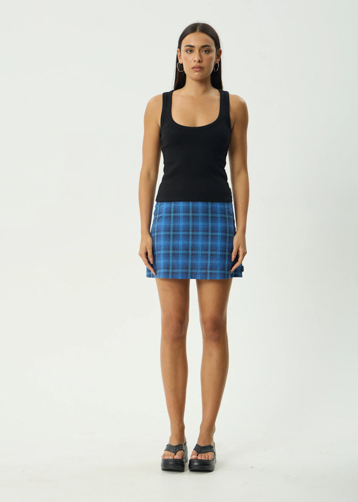 Continuing our use of sustainable, lightweight organic cotton seersucker, now in a custom yarn dyed woven Marina Check for our Camden Collection. This mini skirt is designed with an a-line skimming fit and invisible side zip.
