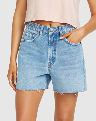 Get comfy in these old skool Riley Shorts. Featuring a high waisted 'mom' style, reminiscent of the 80's with a slight washed and worn look.