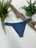 V-cut bikini bottom with ruched detailing and a high-leg silhouette.