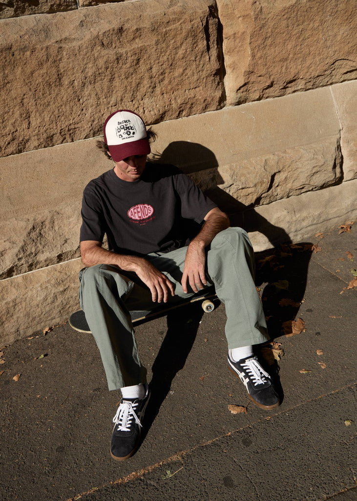The Destroyed retro fit tee is made from a recycled cotton blend dry jersey for a premium hand feel, designed with a comfortable ribbed crew neck and a mix of cracked and puff printed and embroidered graphic. This season, our in house graphics are inspired by going back to our roots, capturing a core AFENDS feel while leaning into skate and streetwear, with strong nods to tattoo culture throughout the designs.