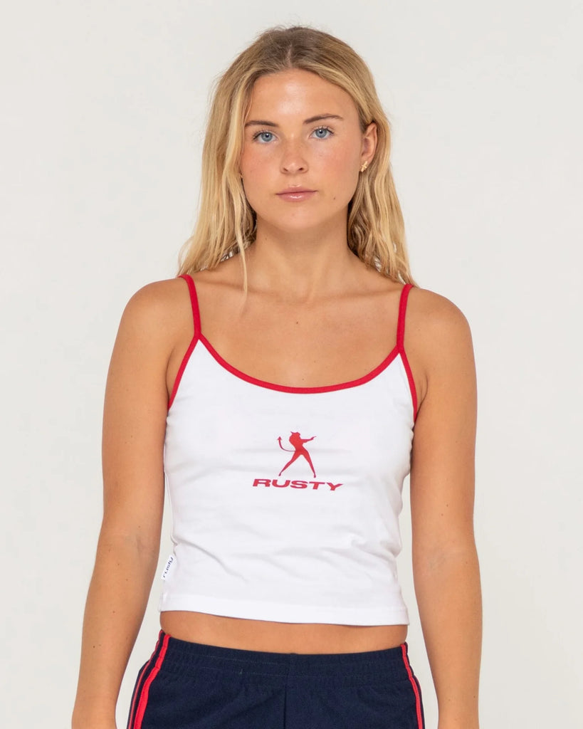 Slim Fit Standard Length Singlet With Centre Front Print And Contrast Bind. 100% Cotton Midweight Jersey