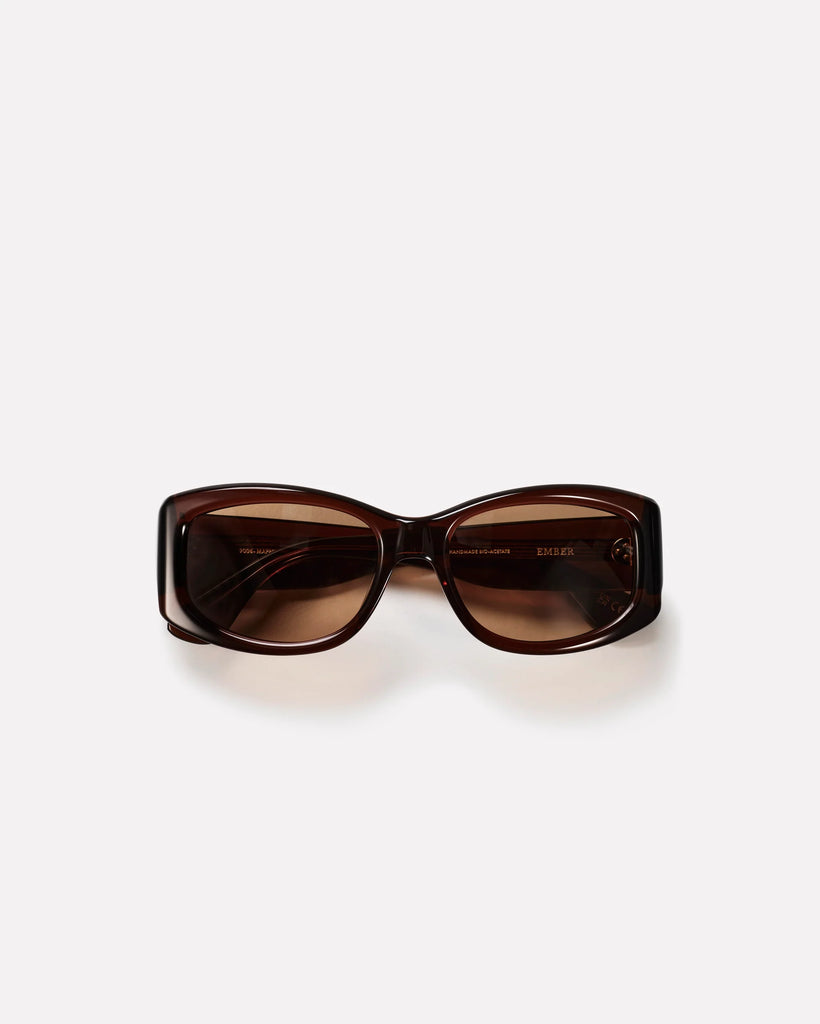 EMBER in Brown Polished / Brown is EPOKHE’s new oversized silhouette with soft bevels and heavy tapering. Hand-cut from plant-based acetate EMBER takes a classic shape and drags it through a modern lens, bigger fit, smoother lines, and simple geometry.