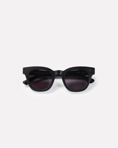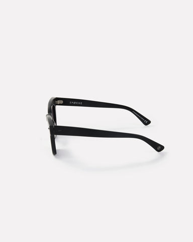 Dylan in Matte Black / Black an iconic frame in the Epokhe collection. Dylan’s Rieder remains deeply woven into the fabric of our brand. As one of our founding collaborators and close friends, Dylan's influence on us lives on through the Dylan frame, a timeless design that embodies his style, attitude, and spirit, drawing inspiration from the classic wayfarer shape and incorporating a sinister aesthetic.