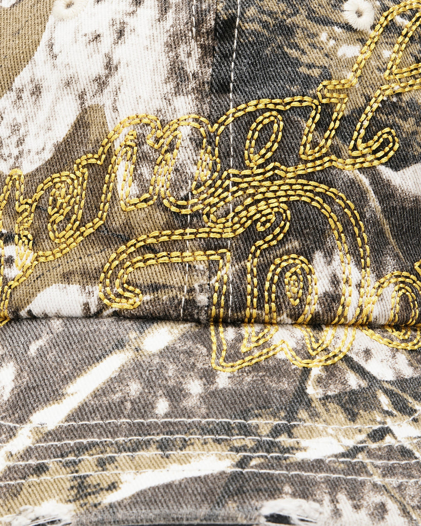 The Y2K Cap in Green Real Tree channels early-2000s energy. A washed cotton twill dad cap with tonal embroidery and Velcro closure, built with a nostalgic edge.