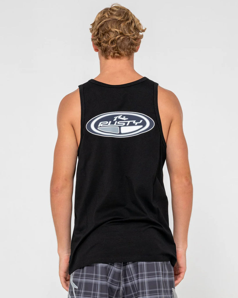 Standard Fit Tank With Rusty Chest And Back Print - Pre Shrunk. 100% Cotton Midweight Jersey