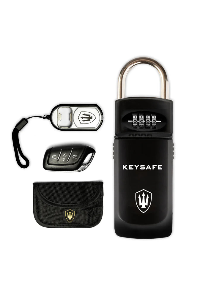 Secure / Durable / Simple With the FK Key Safe there's no more lost keys in the surf or at the beach. Simply pack it, lock it and go surfing. Massive Key storage area Twin Locking Mechanism Hardened Metal Case Foam backed to protect car 10,000 code combinations Total Space = L70mm x W75mm x H35mm (+ further L50mm x H15mm)