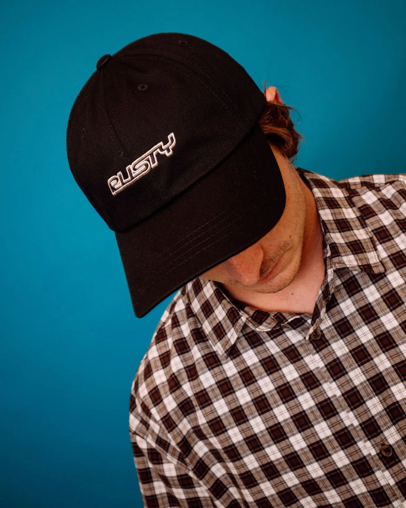 Unstructured Adjustable Cap With Rusty Embroidery. 100% Cotton Twill