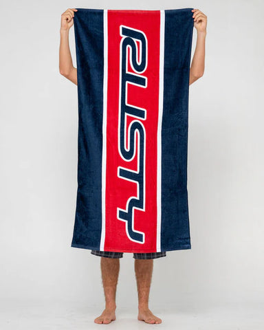 The Rusty Flip Daddy Towel is a beach-day staple with a soft velour finish and bold oversized Rusty logo print.Details: