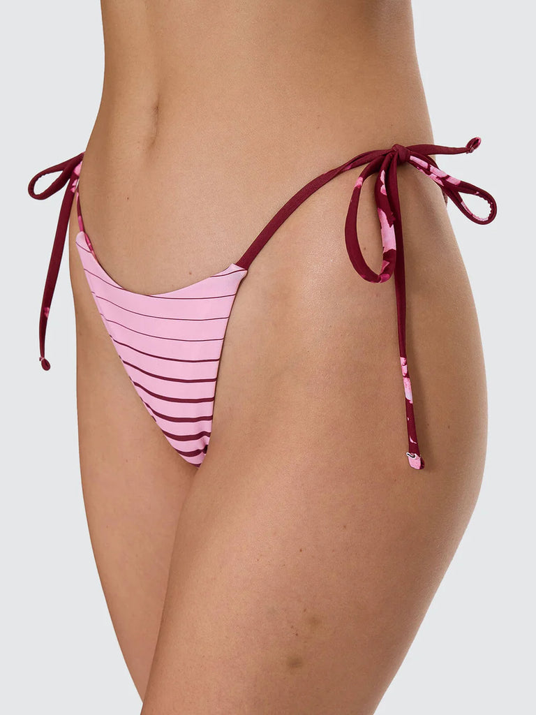 Switch it up with the Full Bloom Reversible String Bikini Bottom in Pomegranate. Designed with a cheeky fit and adjustable side ties, this women's swimwear offers two styles in one, featuring a bold floral side and a clean alternate side for variety. The smooth nylon blend construction offers stretch and a snug, comfy feel, while the fully lined finish keeps everything in place. Easy to style, quick to dry, and made for endless summer rotation, this one seamlessly pairs with the matching string bikini top.