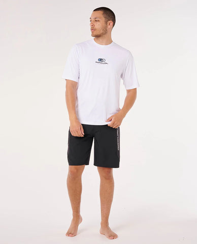 Stay protected with the Icons Of Surflite UPF50 Short Sleeve Rash Vest, designed with stretch polyester, multiple prints, flatlock stitch detail, and an elastic boardshort loop.