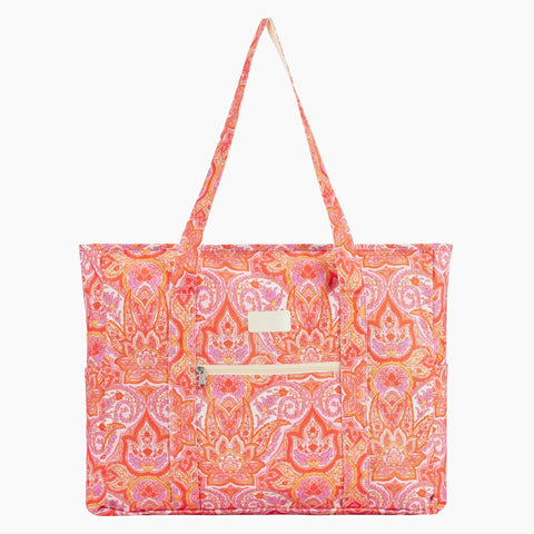 The Paisley beach bag has an intricately hand-painted bohemian print, vibrant in detail and colour. Oversized and durable, it’s designed to carry all your summer essentials with ease. A versatile tote that’s as stylish as it is practical for long days outdoors.