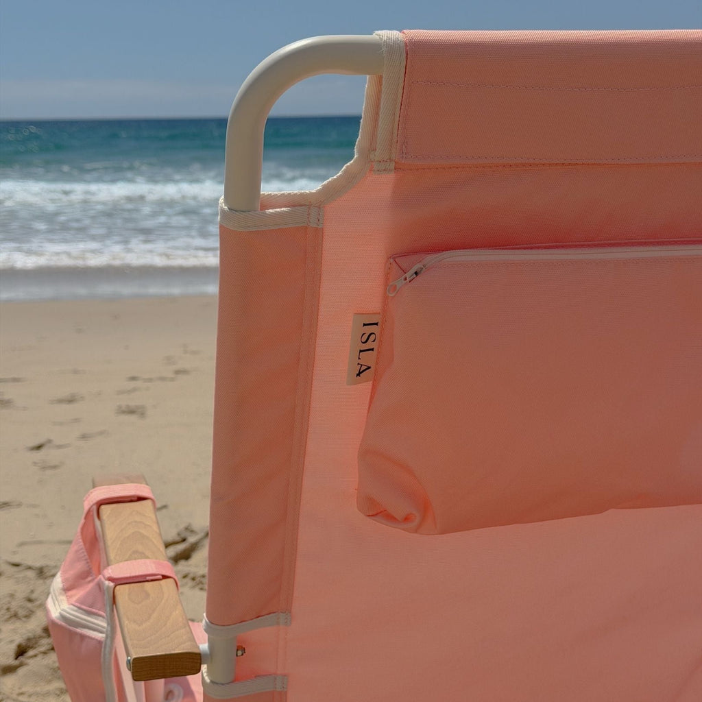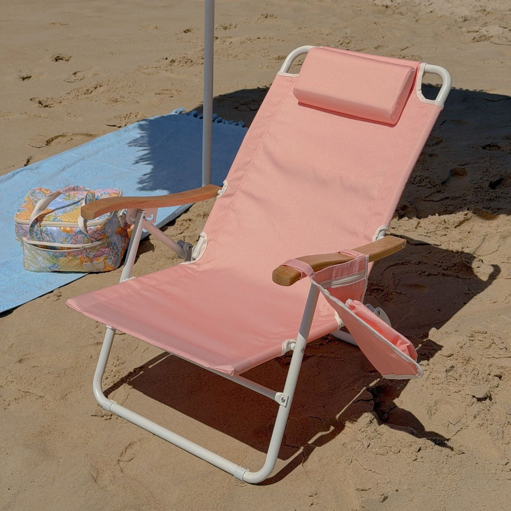 The Peach reclining beach chair has a sun-washed peach hue offering a vibrant, yet minimalist look that pairs well with our beach accessory prints. Adjustable recline and supportive seating keep you comfortable for long, lazy afternoons. With a lightweight, fold-flat build, it’s the effortless staple you’ll reach for all season.