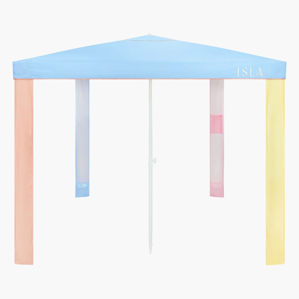 The Sorbet beach cabana has pastel colour blocks of peach, pink, blue and yellow for a nostalgic summer look. Crafted with UPF50+ premium canopy fabric and a spacious design, it provides reliable shade for families and friends. Complete with a matching carry bag, Sorbet combines playful colour, comfort and practicality for carefree days outdoors.