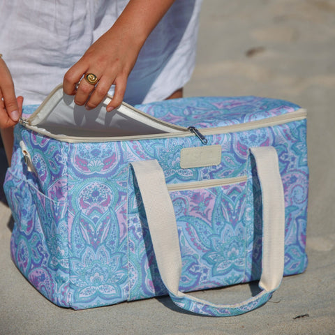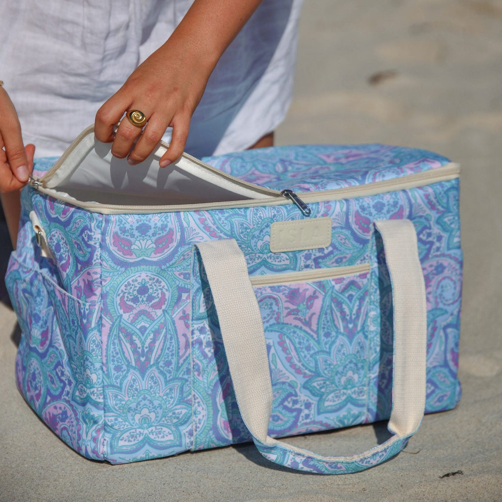 A refreshing palette of blue, aqua, cream and pink, the Tide large cooler bag print exudes bohemian coastal charm. Fully insulated to keep food and drinks chilled, with durable handles for easy carrying. Generously sized at 27L, it’s perfect for family picnics, beach days and weekends away.