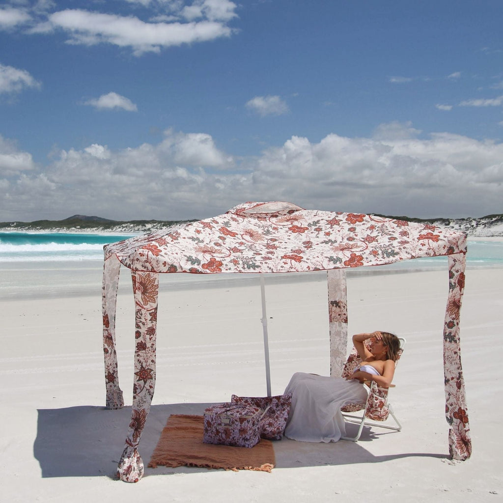 - Seek sun protection with a Willow beach cabana or beach umbrella