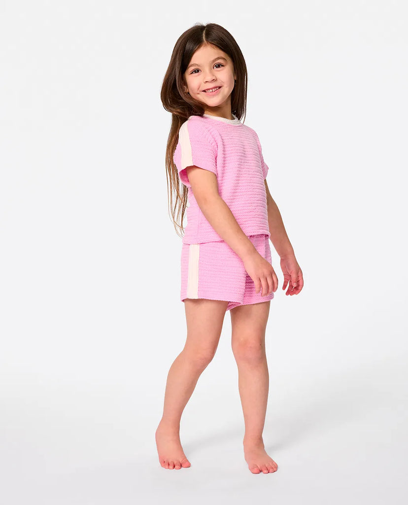 Relaxed crop fit meets striped style in the Island Days Bobbi Tee. Featuring cut-and-sew panels and woven clamp details, this tee delivers breezy comfort and casual surf vibes perfect for playful beach days.