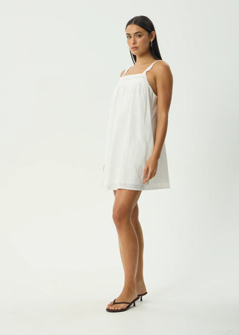 Kindred, our baby doll style mini dress with feminine charm. Designed with scallop lace straps, square neckline with ladder trim and in seam pockets. Its adjustable tie straps allows you to wear it as a halter for a personalised fit.