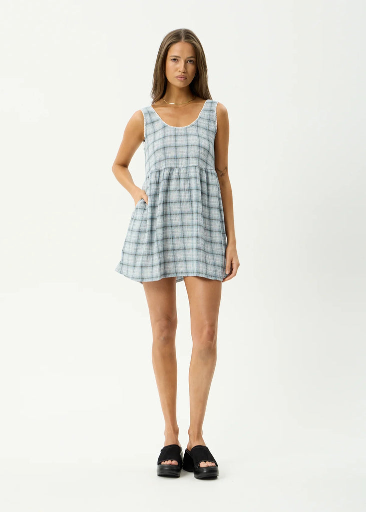 The Lagoon Collection is crafted from a sustainable hemp and tencel blend, lightweight, breathable, and naturally moisture wicking with natural antibacterial benefits, in a custom yarn dyed overcast check in textured seersucker. Designed with a relaxed fit, scooped neck, deep scooped back, lace trim detailing and inseam pockets to store your essentials.