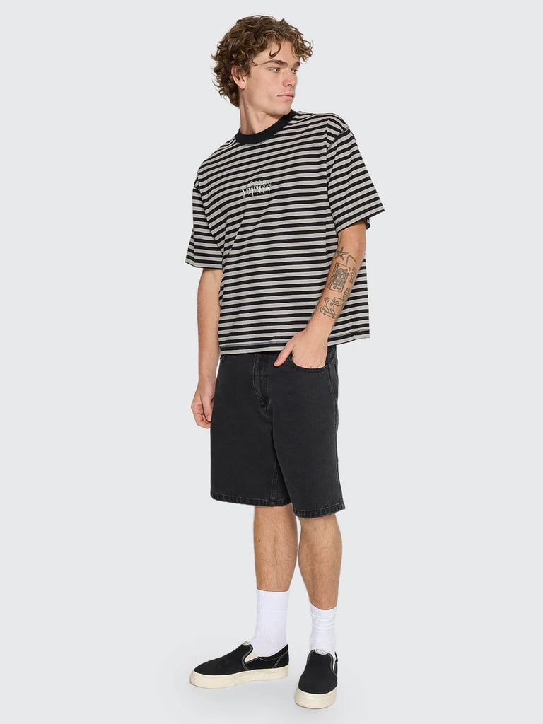 The Mid Slacker Long Short in Aged Black takes Thrills relaxed denim fit into warm-weather territory. Roomy, loose, and built for comfort, it is made from heavy-wearing cotton denim, featuring more room through the body and a touch more length that finishes just past the knee for a more forward fit finish. Designed for versatility, this is a men's fashion au staple that pairs easily with oversized tees for an effortless street-ready look