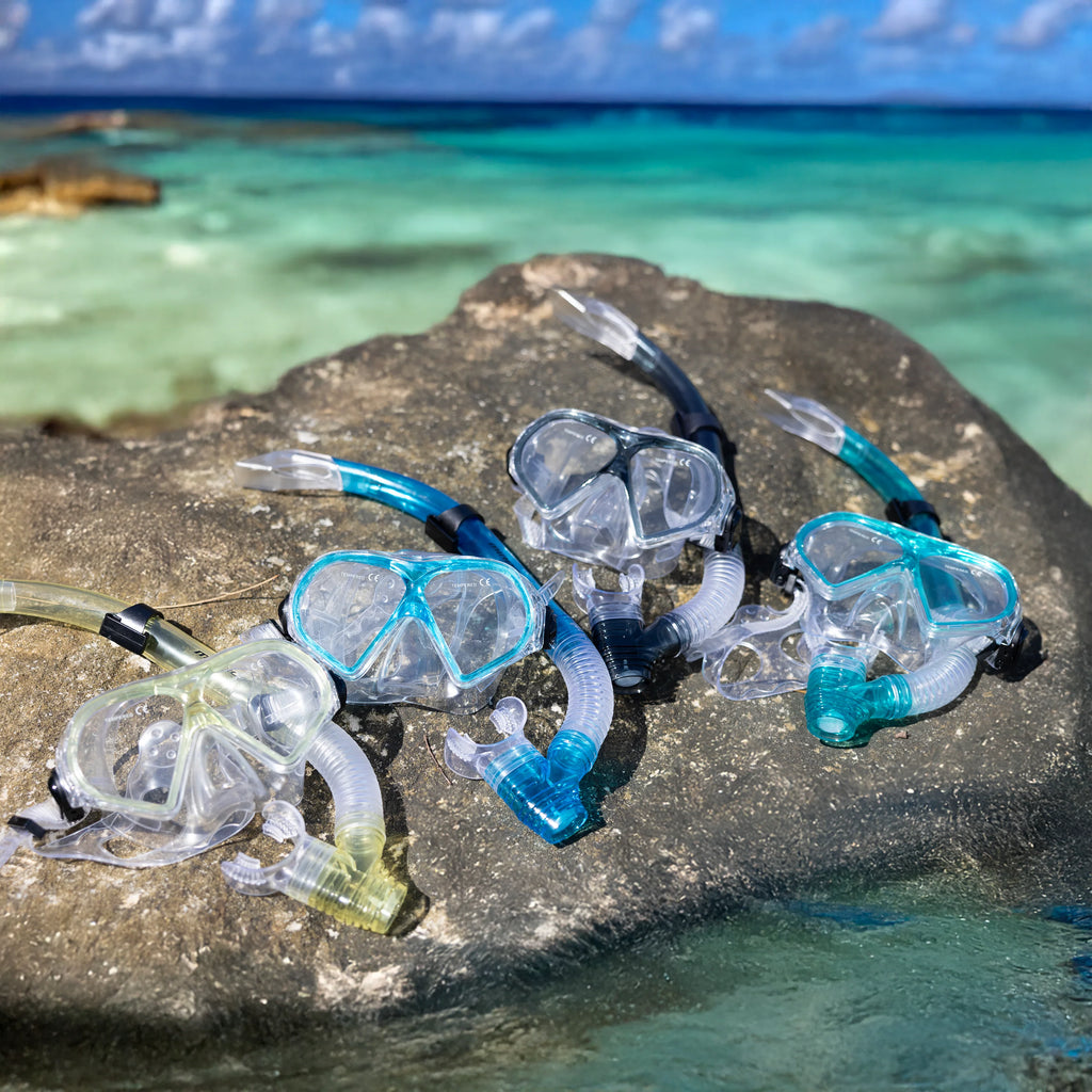 Adult silitex mask* Robust frame and silitex skirt* Twin tempered glass lenses* Modern teardrop shaped sky blue frame