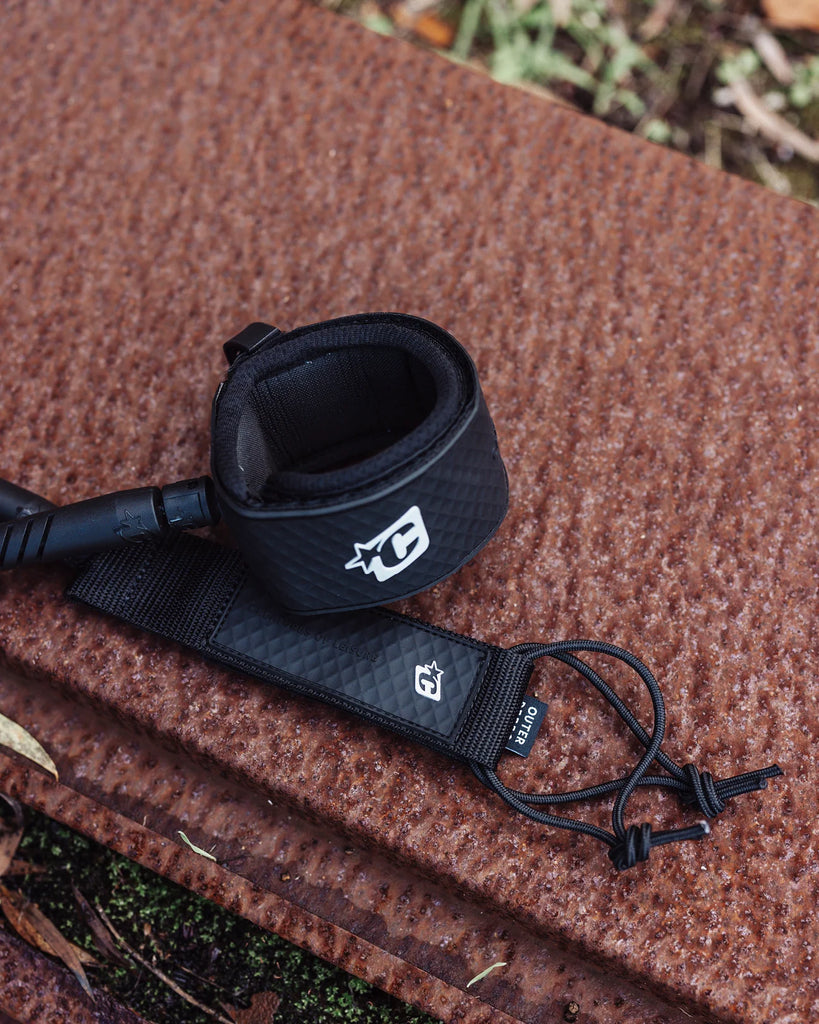 Extreme Leash for extra-large waves. A new generation of reliability made for serious surf conditions with a 9mm cord. The OUTER REEF offers an 8ft, 10ft and 12ft leash that is designed for deep water and large surf conditions and boards.