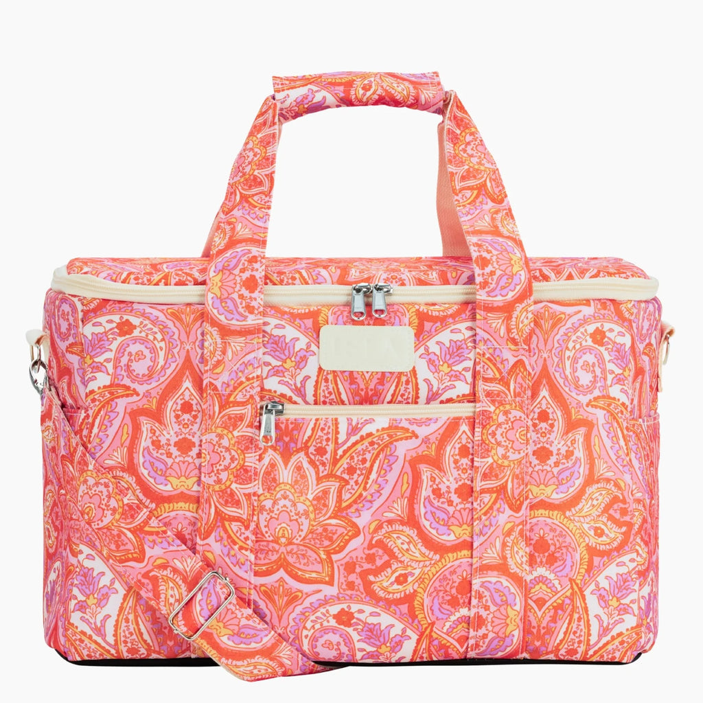 The Paisley large cooler bag has an intricately hand-painted bohemian print, vibrant in detail and colour. Lined with insulation to keep food and drinks cool, Paisley is practical and elevates everyday moments. A spacious 27L size makes it the perfect companion for picnics, gatherings and beachside entertaining.