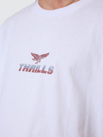 The Paradise Before Anarchy Merch Fit Tee in White doesnÕt play by the rules. Featuring a signature Thrills front graphic on crisp white, this vintage graphic tee channels chaos and calm in equal measure, featuring a classic crew neckline and a slouchy, relaxed fit tee silhouette. Made from premium, mid-weight cotton jersey fabrication, it's your everyday uniform for an edgy, uncompromising street style. Whether you're pairing it with men's baggy jeans or throwing it under a leather jacket, this men's streetwear Australia staple holds its own. Made for those with a soft spot for good cotton.