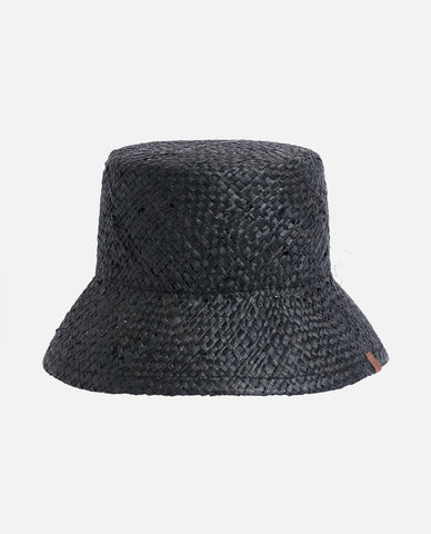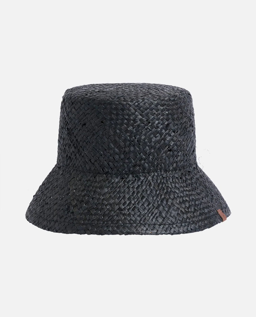This fashion-forward bucket hat, made from raffia straw, has a short brim and leather clamp detail. The handmade design gives it a refined yet casual appeal.