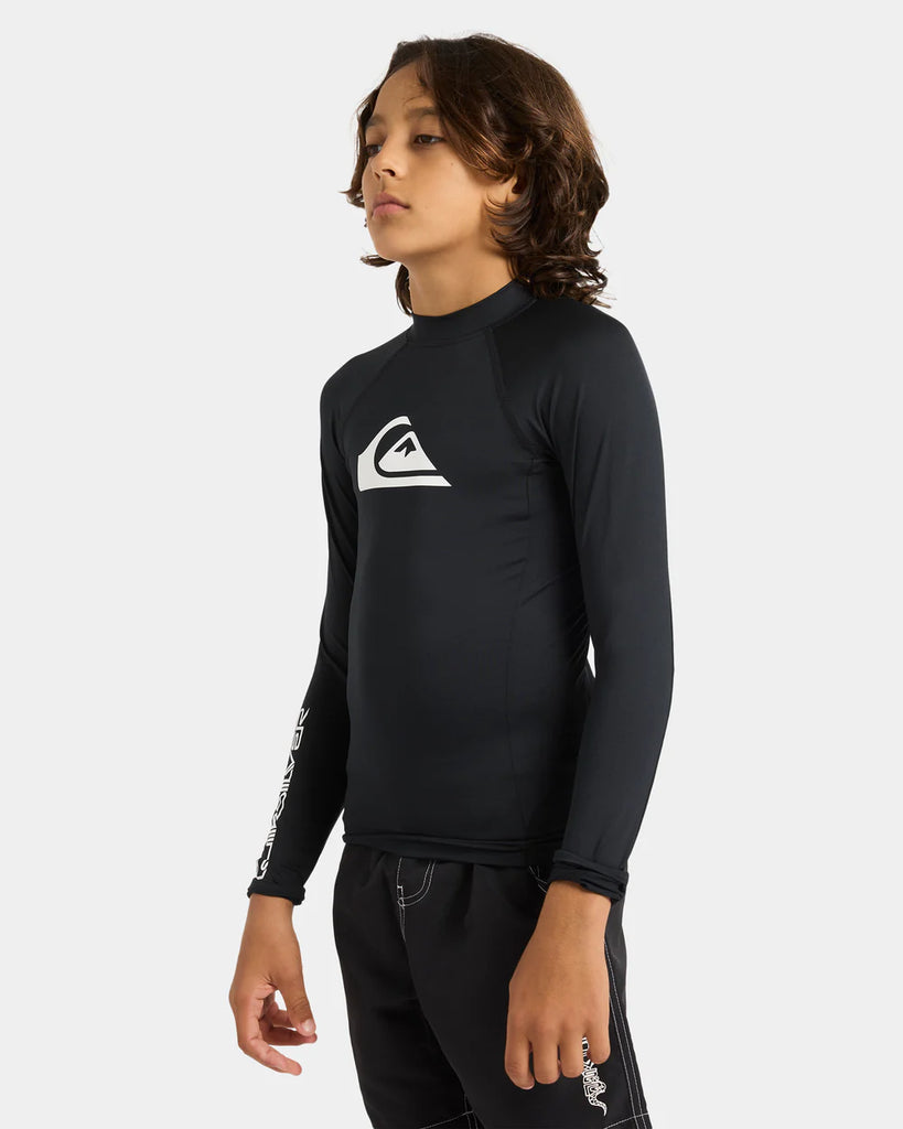 Product: Long Sleeve Surf TeeProduct: RashguardFit: SnugFabric: UVFLIGHT, a functional classic made from recycled yarnUPF 50+ Sun protectionChlorine ResistantMoisture WickingSolution Dyed (Black)