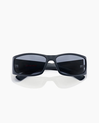 A solid rectangular frame with a wide fit and a thick protective temple to block out anything the final days of earths destruction can throw at you.