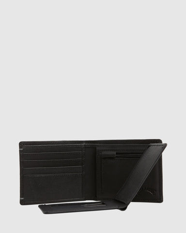 - Coin zip pocket; double sleeve notes compartment; ID window with slide