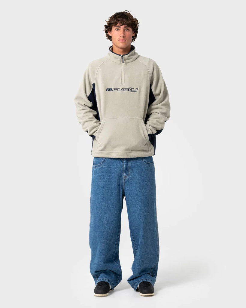 Relaxed R2K Fit Quarter Zip Fleece With Under Arm Panels - Joey Pocket And Rusty Embroidery. 100% Polyester Polar Fleece