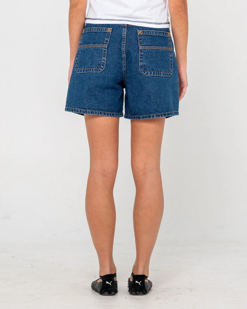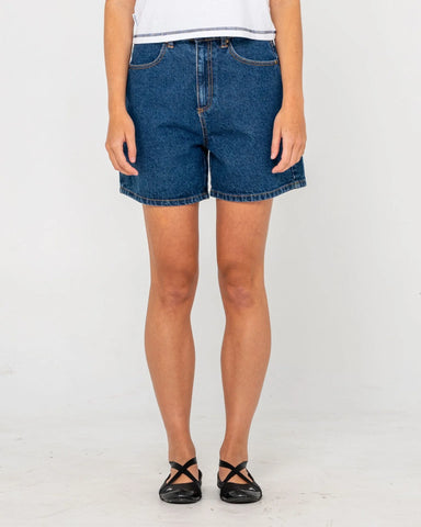 15" Outseam High Waisted Denim Short. 100% Cotton Indigo Denim