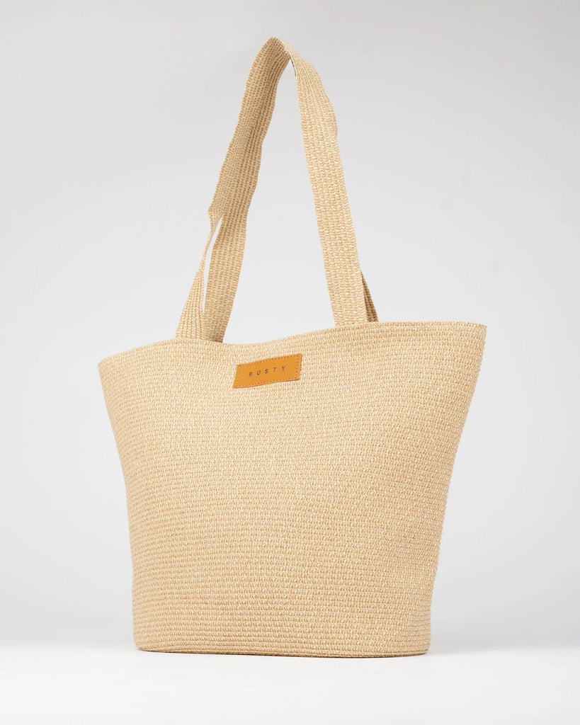 W50cm - H36cm - D11cm Large Beach Bag With Rusty Patch. 100% Paper Straw