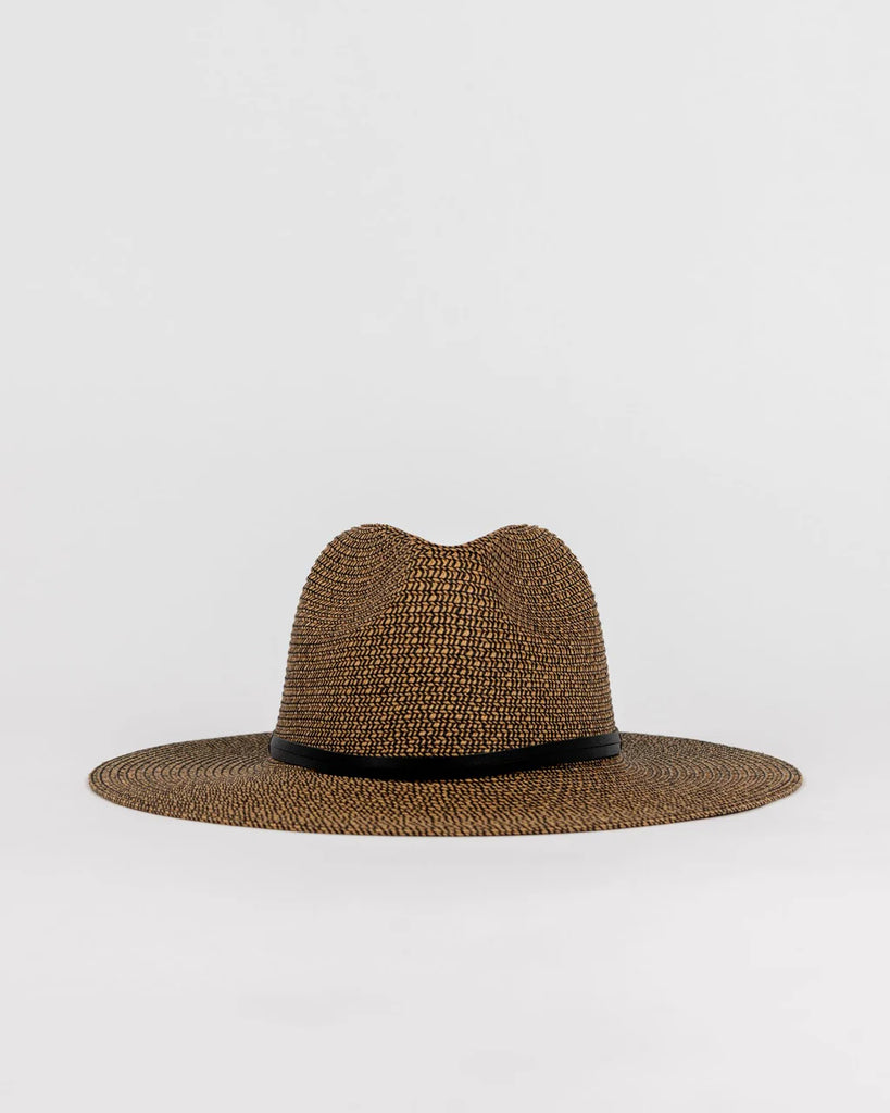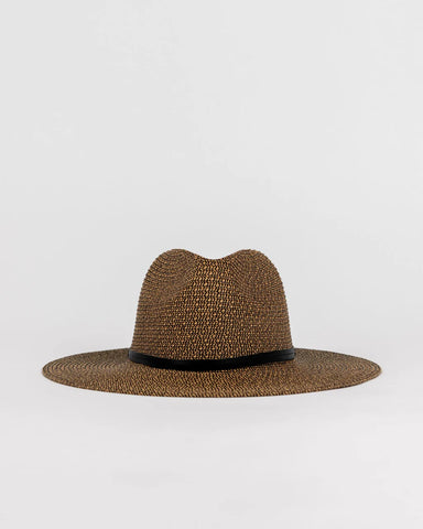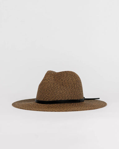 Panama Style Straw Hat With Thin Crown Band And Rusty Metal Coin Trim. Paper Straw