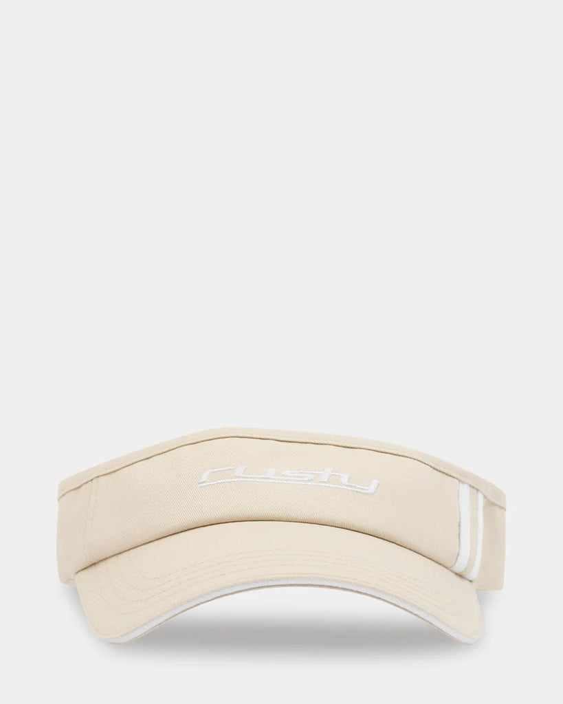 Adjustable Visor With Rusty Embroidery And Fabric Applique Stripes. Material: Cotton Canvas