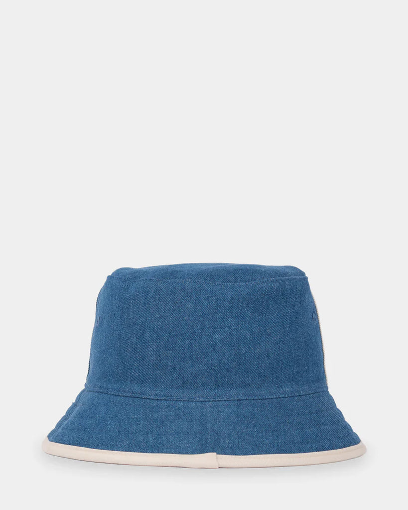 Reversible Bucket Hat With Rusty Heritage Logos And Matching Brim Binding And Panel Detail. Material: Cotton Twill / Denim