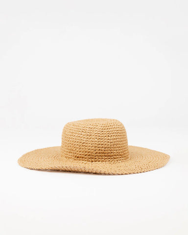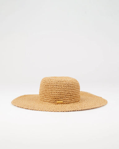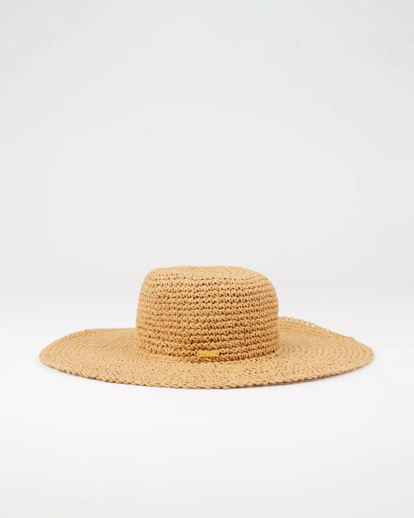 Large Brim Woven Beach Hat With Rusty Metal Trim. Paper Straw