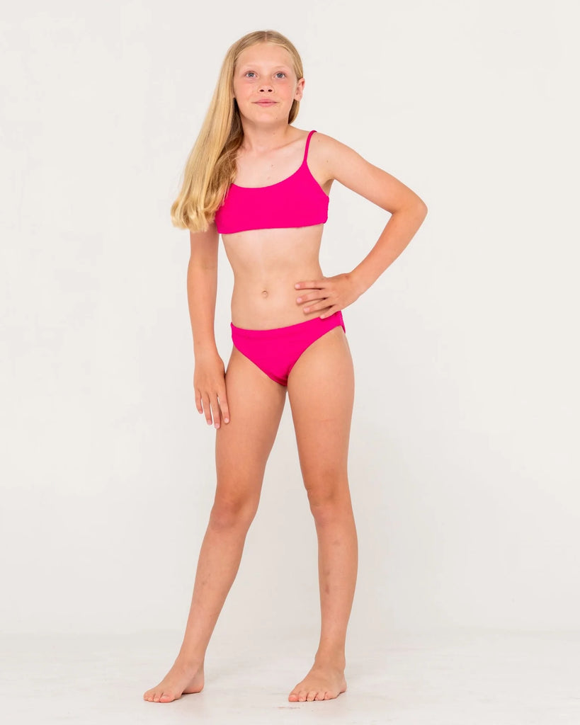 Textured Adjustable Bralette Top With Classic Fit Pant Bikini Set For Girls. Textured