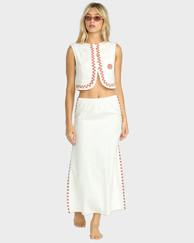 Product Type: Midi skirtFabric: 60% Cotton, 40% Viscose slubFit: Body-skimming fitLength: 35.25"Details: Elastic waist, embroidery detail at side seams, splits at side seamsBranding: Metal plate