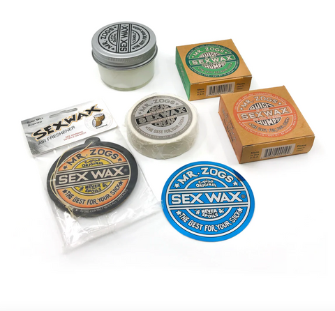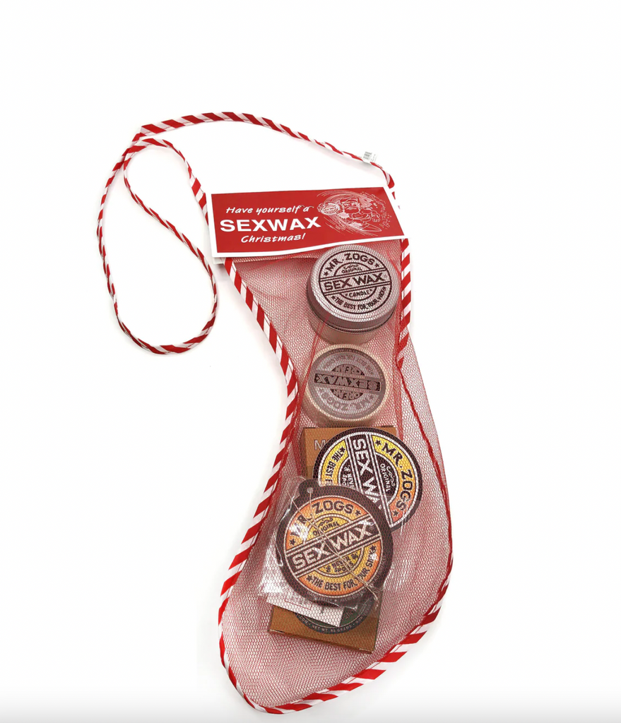 The SexWax Christmas stocking includes 2 blocks of wax, 1 Candle, 1 air freshener and 1 sticker. The perfect stocking for any aged surfer who loves SexWax.