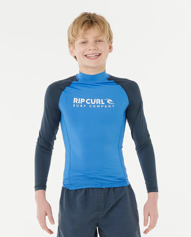 Built for older kids, this performance-fit rash vest combines sun protection with chlorine-friendly fabric and flatlock seams. The elastic boardshort loop and heat transfer graphics make it a reliable choice for serious wave riders.