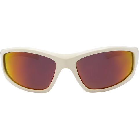 The polarised orange lenses sharpen vision and kill glare, while the bone-white frame nods to Jesse’s signature recorder, a symbol of his unshakable flow and unorthodox style.