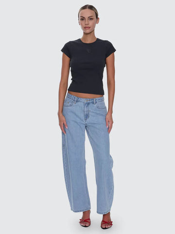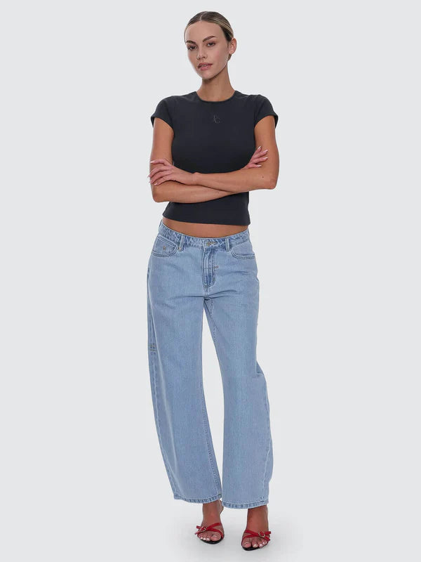 Easygoing and effortlessly stylish, the Sloane Low Rise Barrel Jean in Ageless Blue elevates your basic denim with a bold, street-ready silhouette. Sitting low on the waist, this oversized denim style features a curved barrel leg that adds shape and attitude without sacrificing comfort. Cut from lightweight cotton denim, this women's barrel jean is finished with multiple pockets and a centre front zip and button closure. The light wash keeps things fresh and laidback, making it simple to style with fitted tees or cropped knits.