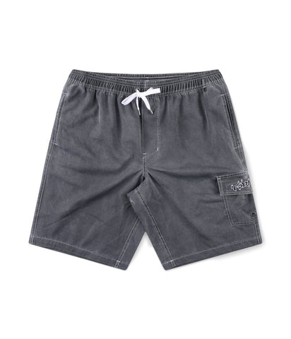 Delivered in our Swans 21" swim trunk fit and constructed from a premium polyester-spandex blend pigment fabric with 4-way stretch. Featuring an elastic waist with drawstring closure, side cargo pocket with velcro, seasonal graphic embroidery and ring pull zipper rear pocket.